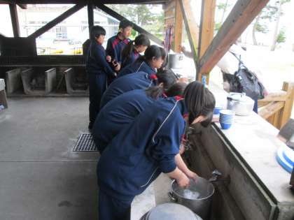 ススで真っ黒になった鍋との闘い。根気のいる作業です。