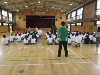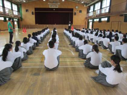 今日は体育館で、集合整列、点呼、バス座席、班行動などの練習を行いました。