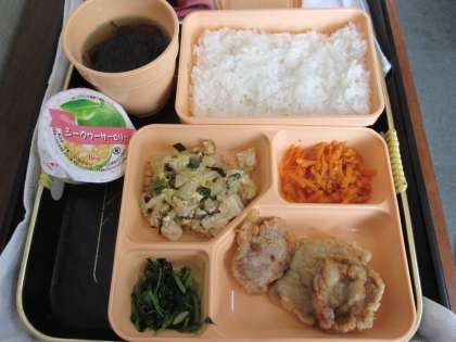 「豚肉のウチナーてんぷら」、「豆腐チャンプルー」、「にんじんシリシリ」、「もずくのすまし汁」「シークワーサーゼリー」でした。