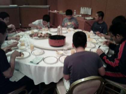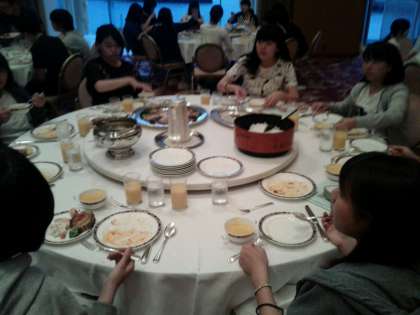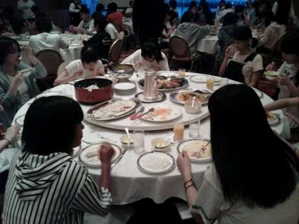 ポタージュやミートスパゲッティ、ハンバーグを楽しそうに食べています。