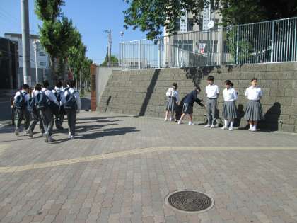 今朝は1・2年のみの登校。3年は修学旅行疲れを配慮して、10時前の登校です。