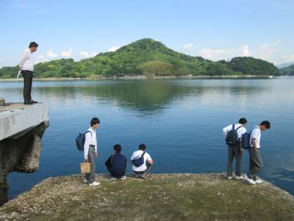 一晩を終え、朝食を済ませて、生徒たちは「離島式」の行われる白水港へ集まってきました。