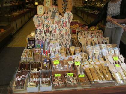 ご当地グッズの有名な「合格しゃもじ」など、様々な土産が並んでいます。