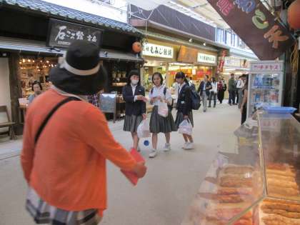 「つぎ、どこ行こ?」「あの天ぷら、めっちゃ、上手そうやん!」「やっぱり、紅葉まんじゅうや!」
