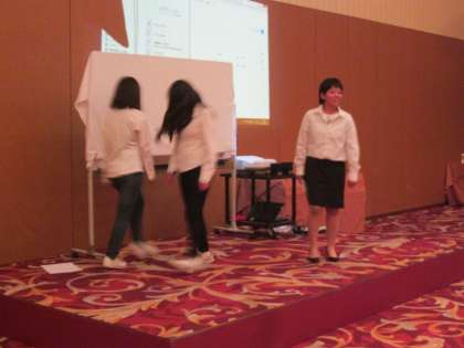 BGMに合わせて、決まり文句で決めポーズ。