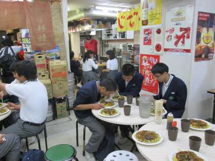 ソースの味がたまりません。みんな美味しそうにほおばっています。