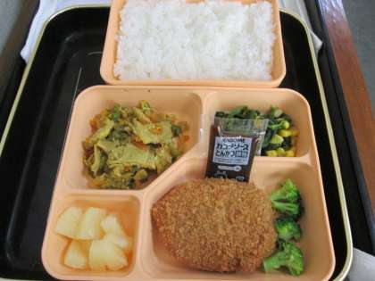 メインは「コロッケ」。とんかつソース付きです。