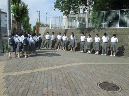 眩しい中、生徒会によるあいさつ運動。励んでくれています。