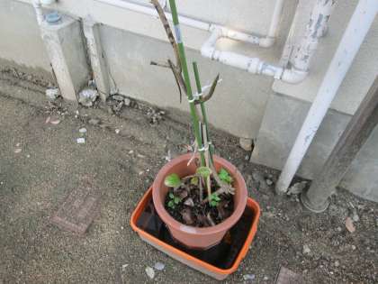 力尽きて、冬に枯れてしまいましたが、新しく葉が出てきました。