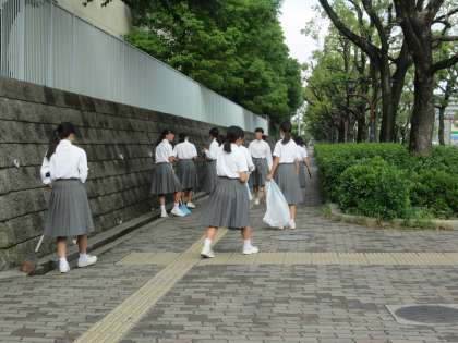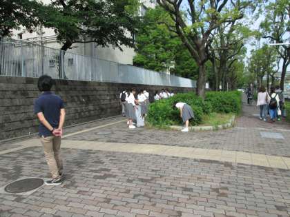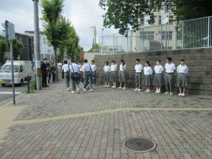 今朝は、ソフトテニス部が歩道の掃除をしてくれました。