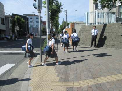 眩しい日差しの中、生徒たちが元気に登校して来ました。