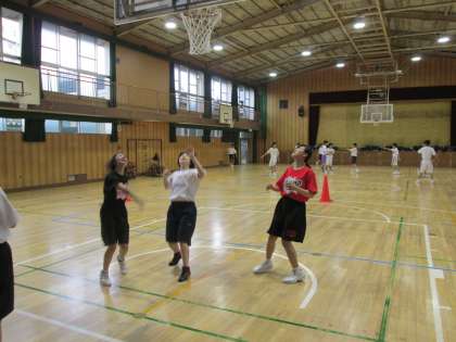 和室で演劇部が、体育館で男女バスケットボール部が活動しています。