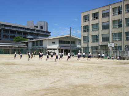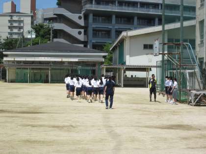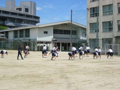 グラウンドでの2年生の授業です。