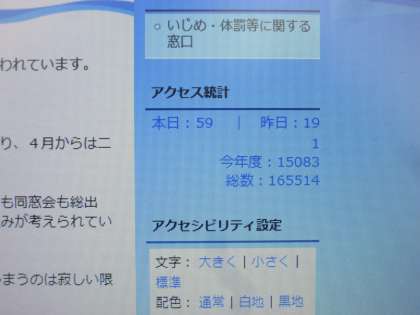 本校の学校ホームページ、おかげさまで今年度のアクセス数が、15,000アクセスを突破しました。ありがとうございます。