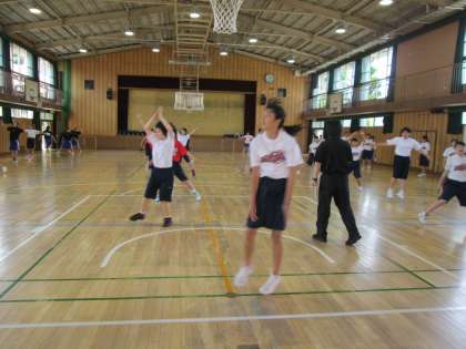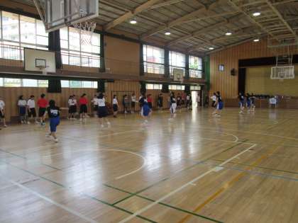 まずは、みんなでフットワーク。バスケットの基礎基本です。