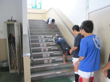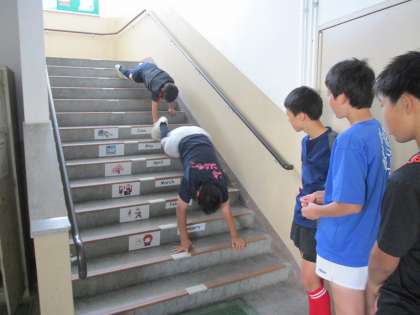 今日は階段を使い、手足のパワーアップを図っています。