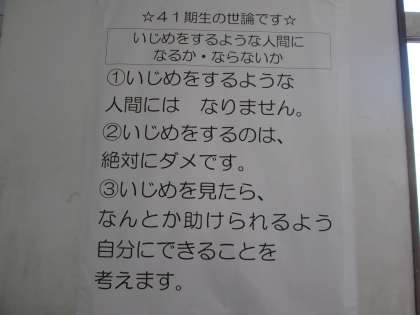 道徳の時間と連動しながら、読み物教材や、生徒たちの意見、感想文から、「世論」が生まれ始めています。