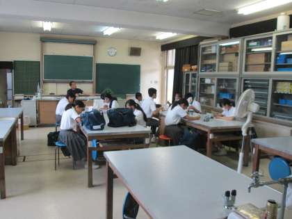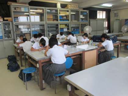 テスト直前。朝早くから、理科室で復習の勉強が始まっています。