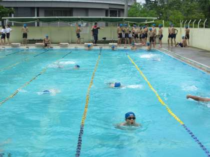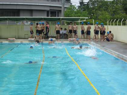 プールの授業。太陽が照って、環境抜群です。