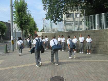 蝉の鳴き声に、あいさつの声が負けてしまいます。