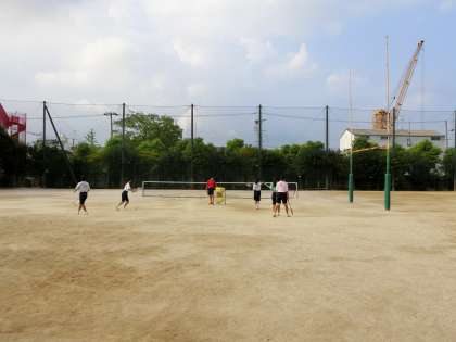 ソフトテニス部が連日の早朝練習で頑張っています。