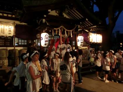 境内では、無事に宮入りを終え、大人たちが若者・子どもたちを讃えています。
