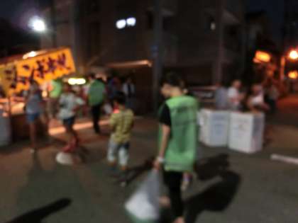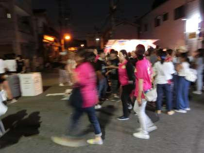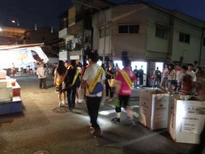 大正中央中学校のPTAは黄色の襷、泉尾東小学校PTAは緑のベスト、そして、本校PTAは、ピンクのスタッフポロで巡視しています。