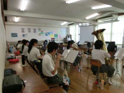 リハーサル中の音楽室をのぞきました。精一杯頑張ってください。