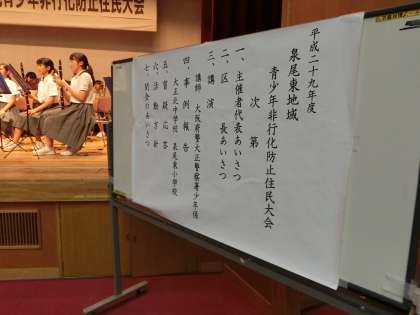 昨晩に行われた「泉尾東地域青少年非行化防止住民大会」の様子です。