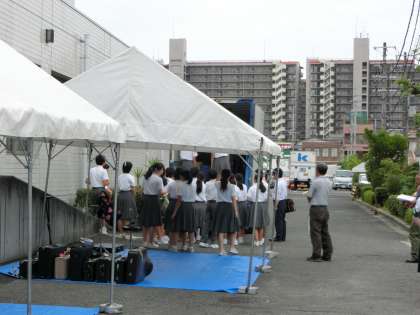 部員たちはホールに到着すると、トラックで運ばれてきた楽器を、テキパキと会場に搬入します。