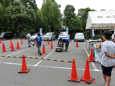 玄関前では、ミニソーラーカーの試乗体験。泉尾工業、西野田工科高校の生徒諸君が活躍しています。