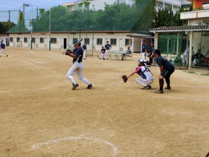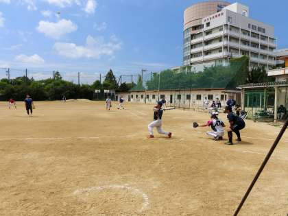 本日、グラウンドでは、PTAソフトボールチームの練習試合が行われています。