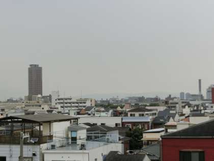 北摂の山々がかすかに見えるだけです。