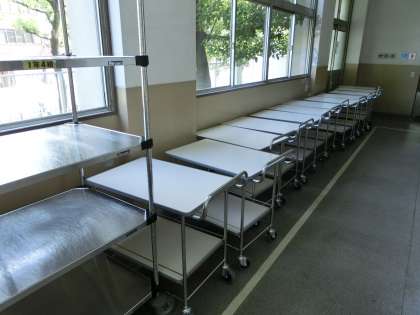 昨日、教室での配膳用として、ワゴンが到着しました。