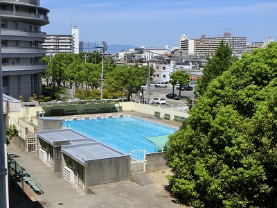 土曜日、運動部員たちが、先輩のためにプール掃除をしてくれました。