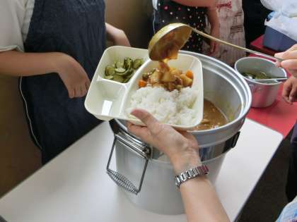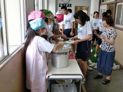バンダナ、エプロン姿の係生徒が、頑張ってくれています。