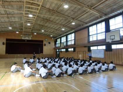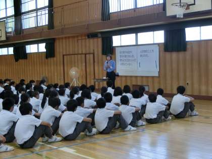 近年、9月に多く見られる若者の自殺をうけ、「命を大切にする、まわりにいじめや嫌なことをしない、みんなでみんなを助ける・・・。」