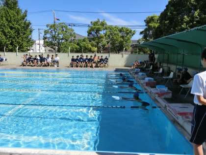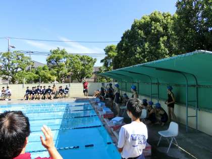 女子の25mビート板から、始まりました。