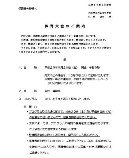 平成29年度 第40回体育大会のお知らせ