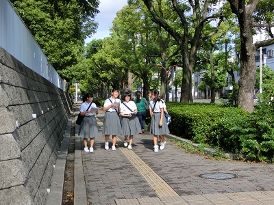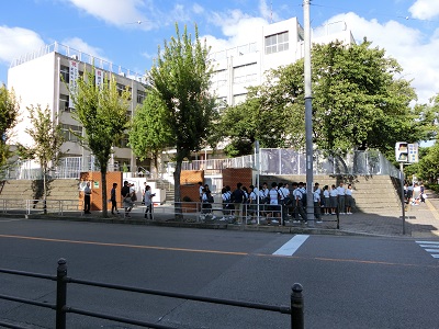 爽やかな風が吹き抜ける中、あいさつ運動が展開されています。
