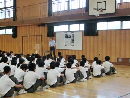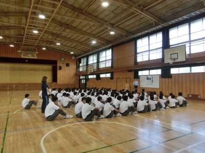 先生からは、世界の人権問題から発した事件を例に、一つの不快感から大事件に至ることや、まわりの仲間や友だちを大切にすることについてお話がありました。