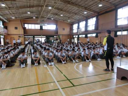 一週間の始まり、本日も体育館で全校集会を行いました。