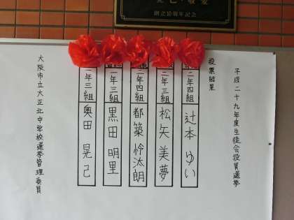 先日の生徒会役員選挙の結果、全員信任されました。