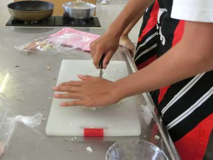 玉ねぎのみじん切り。なかなかの手つきです。