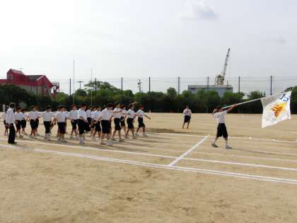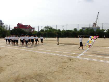 入場行進、小学生の紅白の運動会とは、一味違います。