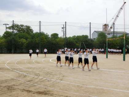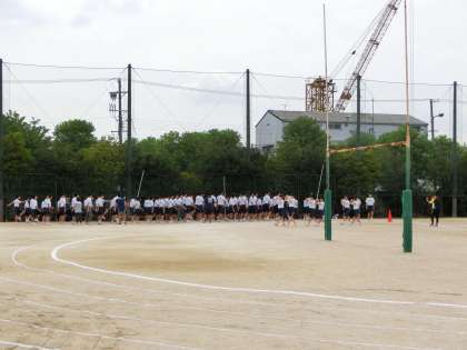 グラウンドでの入場行進練習です。