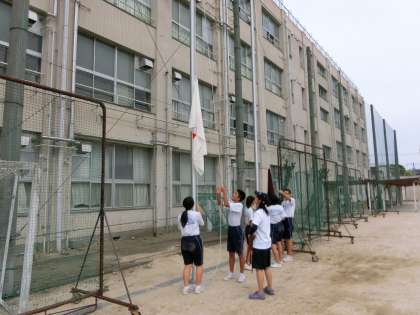 生徒会が「国旗」・「校旗」を揚げていきます。