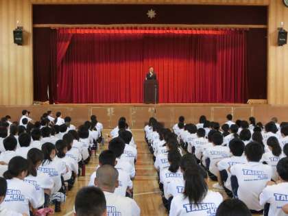 それから昨日は、泉尾東小学校と北恩加島小学校で「運動会」が行われました。とても良いお天気で、君たちの後輩である児童さんが素晴らしい走りや、パフォーマンスを見せていました。次は、君たちの番。金曜日の体育大会でその力を発揮しましょう。