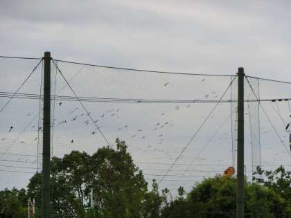空を見上げると、渡り鳥でしょうか。大群が西の空へ。