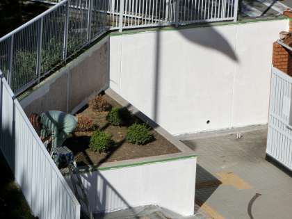 管理作業員さんの手によって、今度は正門内の壁が、美しく「白亜」になっています。